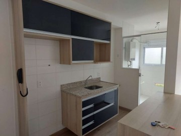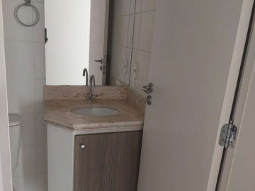 Apartamento c/ 2 quartos c/ armários embutidos, sendo 1 suíte, sala 3 ambientes integrados à cozinha, sacada c/ guarda corpo de metal, cozinha com armários planejados, 2 banheiros com bancadas em mármore travertino, espelho, gabinetes e box de vidro, lavanderia c/ tanque e armário e 1 vaga de garagem coberta.