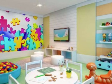 Condomínio com área de lazer: Brinquedoteca, churrasqueira, espaço juvenil, fitness, forno de pizza, piscina adulto, deck Molhado, piscina infantil, playground, quadra recreativa, sala de estudos, solarium, salão de festas gourmet, bicicletário, fonte e portaria 24 horas.