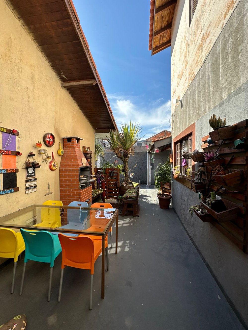 Sobrado 3 quartos, sala, cozinha, lavanderia, 2 banheiros, espaço gourmet c/ churrasqueira, quintal com jardim, garagem com portão automático e 5 vagas.
