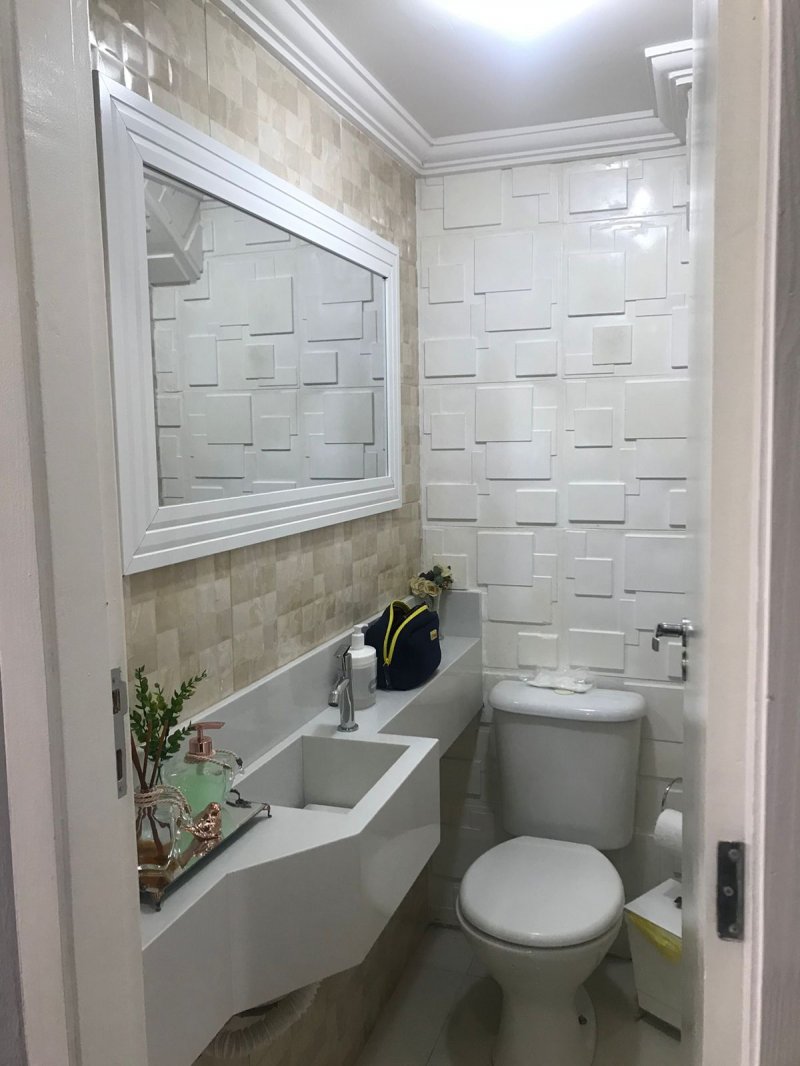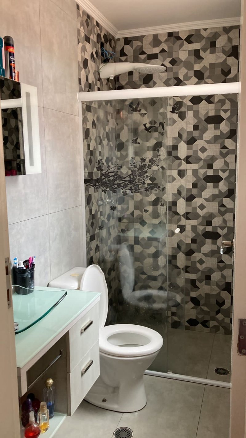 Lindo sobrado 3 quartos, sendo 1 suíte com armários planejados, sala de estar, sala de jantar, cozinha com armários planejados, lavanderia, 2 banheiros c/ gabinete e box de vidro, lavabo, amplo quintal e 2 vagas de garagem cobertas.