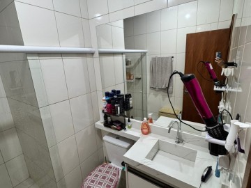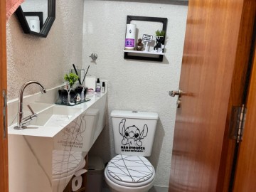 Sobrado 2 quartos, sala 2 ambientes, cozinha c/ armários planejados, fogão CookTop e exaustor, lavanderia , banheiro c/ Box de Vidro e gabinete, lavabo, quintal c/ piso cerâmico e corredor lateral e 1 vaga de garagem.