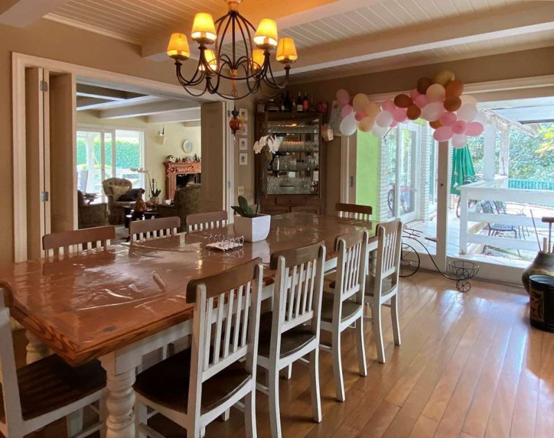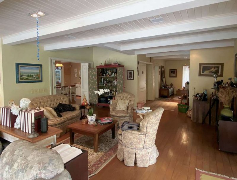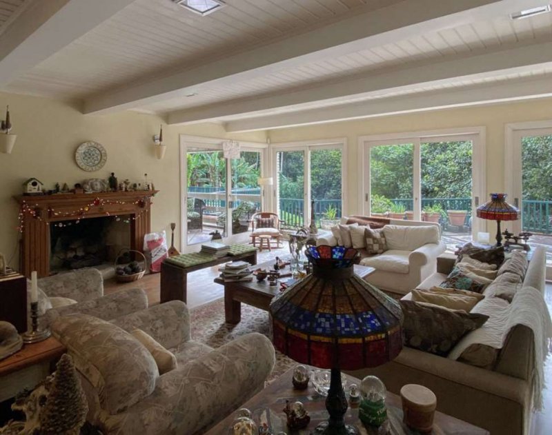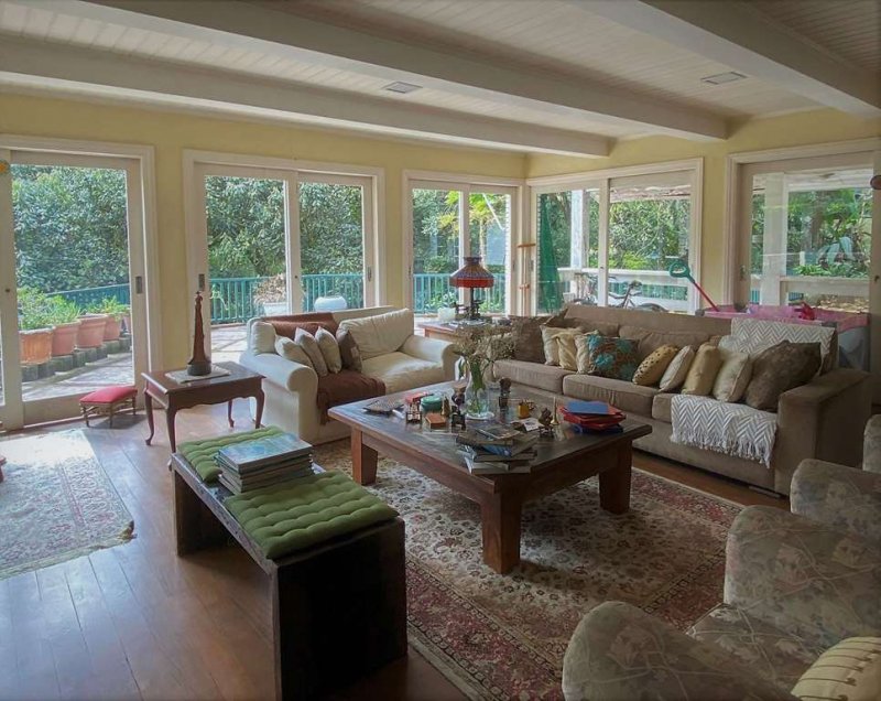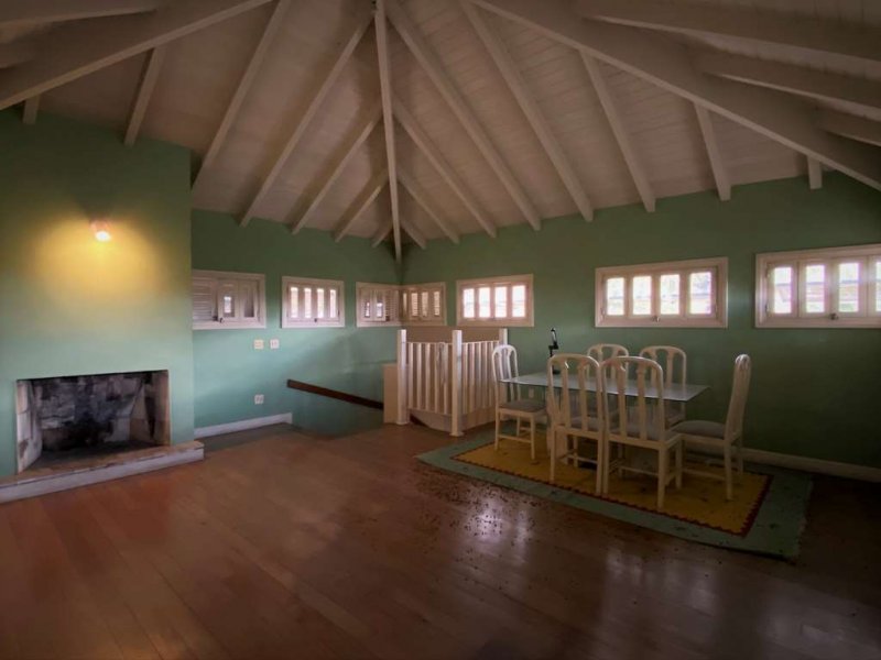 - Salas de estar, lareira com frontão em Pinho de Riga, TV, bar e jantar mais reservada, voltada para outra varanda e quintal.