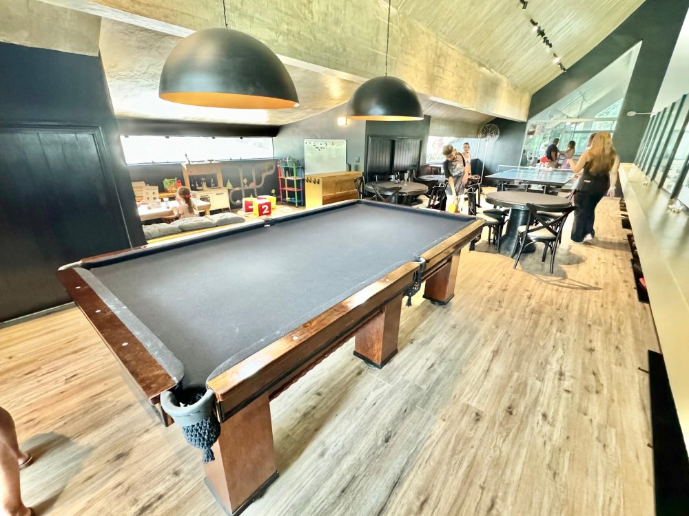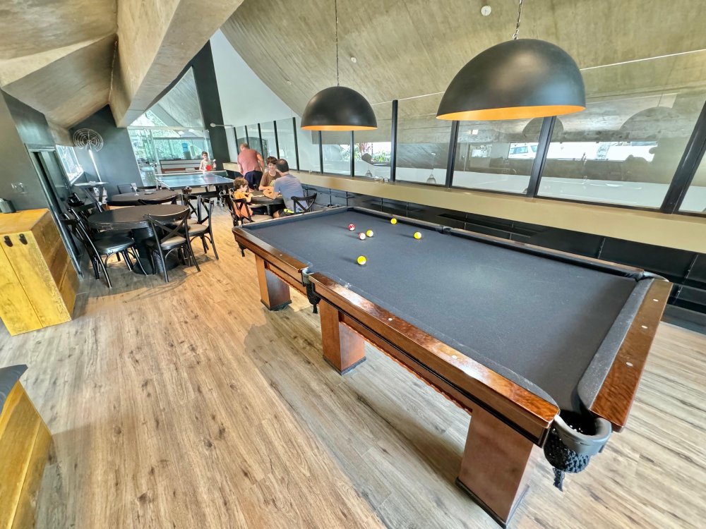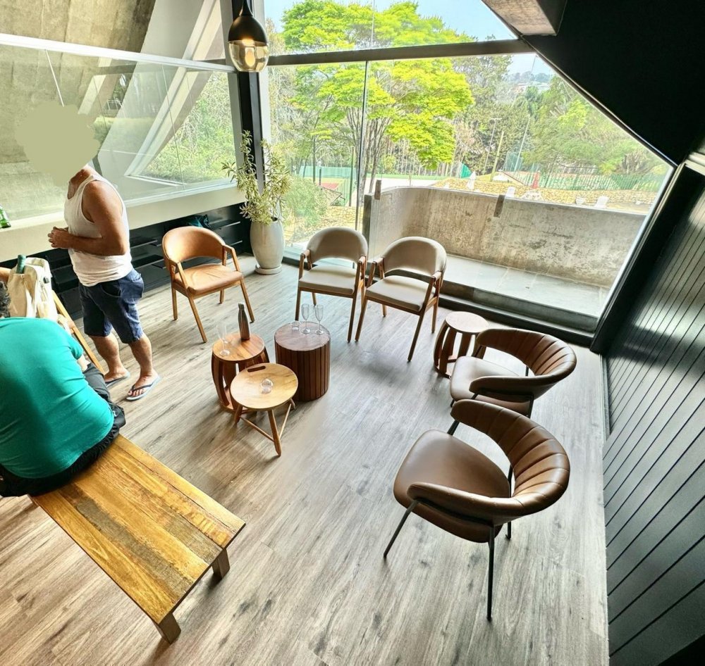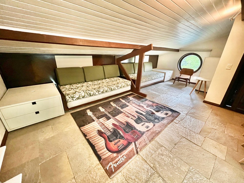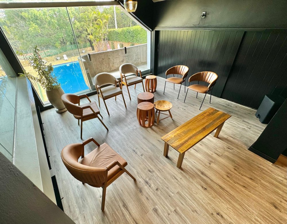 No patamar inferior, um amplo salão de festas com banheiros e depósito oferece a estrutura ideal para receber convidados. Uma suíte adicional para hóspedes, com armários, sacada e mobília, tem acesso direto à garagem da casa, proporcionando privacidade e comodidade.