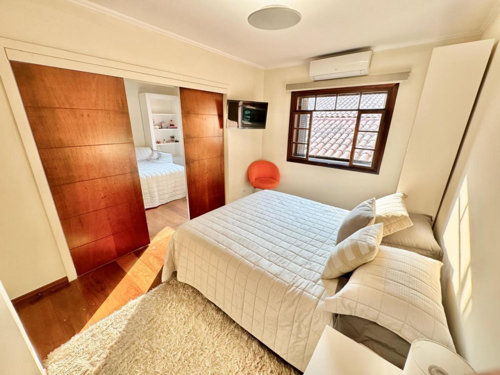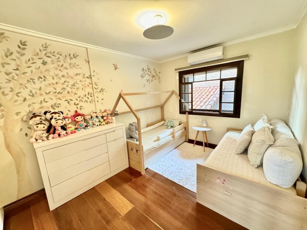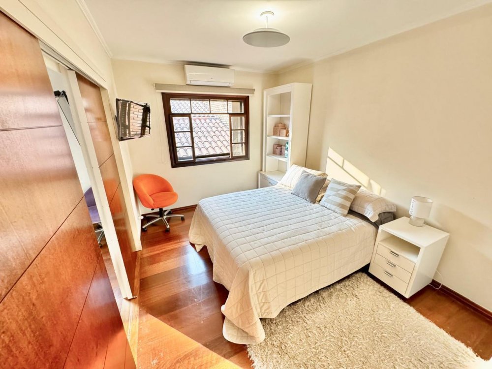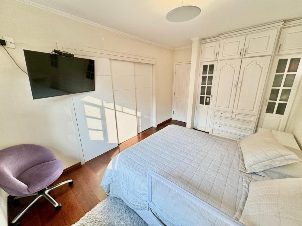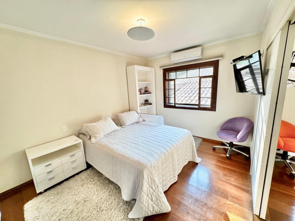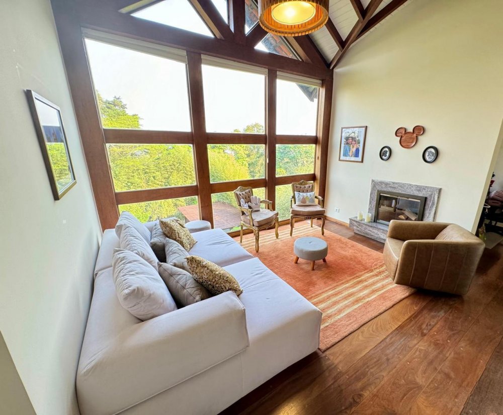 As quatro suítes amplas são verdadeiros refúgios de conforto, sendo uma delas equipada com sala íntima e ar-condicionado, além de armários planejados. A sala íntima de TV com lareira é o espaço perfeito para momentos de relaxamento em família.