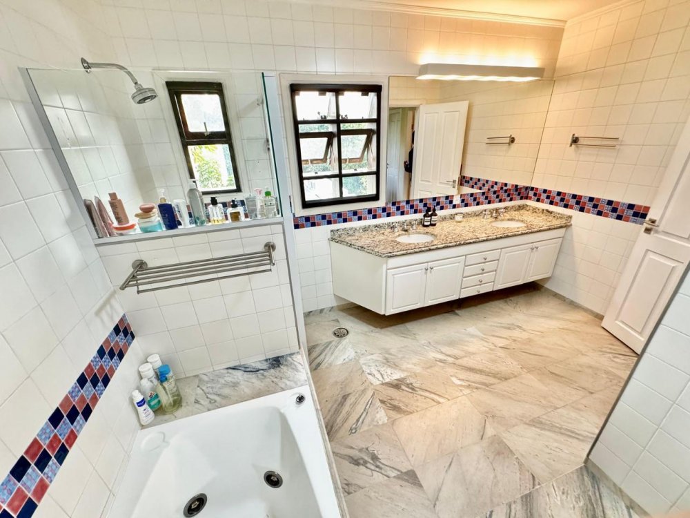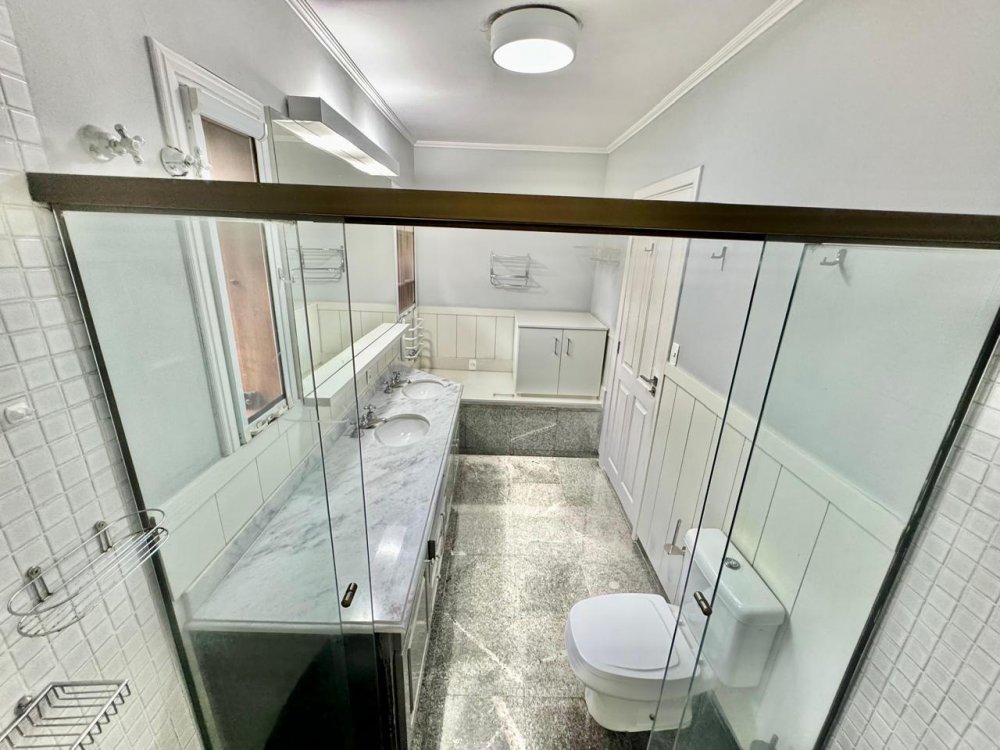 Um escritório com varanda privativa para o jardim oferece um espaço tranquilo para o trabalho ou estudo. O lavabo decorado é um charme à parte. A cozinha planejada é um convite para momentos gastronômicos, com despensa e uma lavanderia equipada com armários. Para maior comodidade, a casa dispõe de dependências completas para funcionários, incluindo dois quartos, cozinha e banheiro.