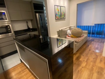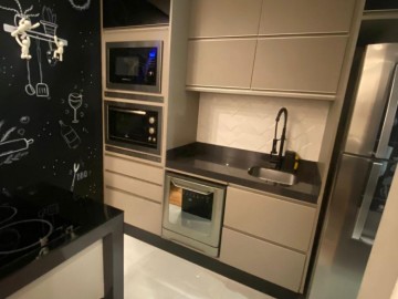 Cozinha: armários planejados, micro-ondas, forno e fogão de indução
