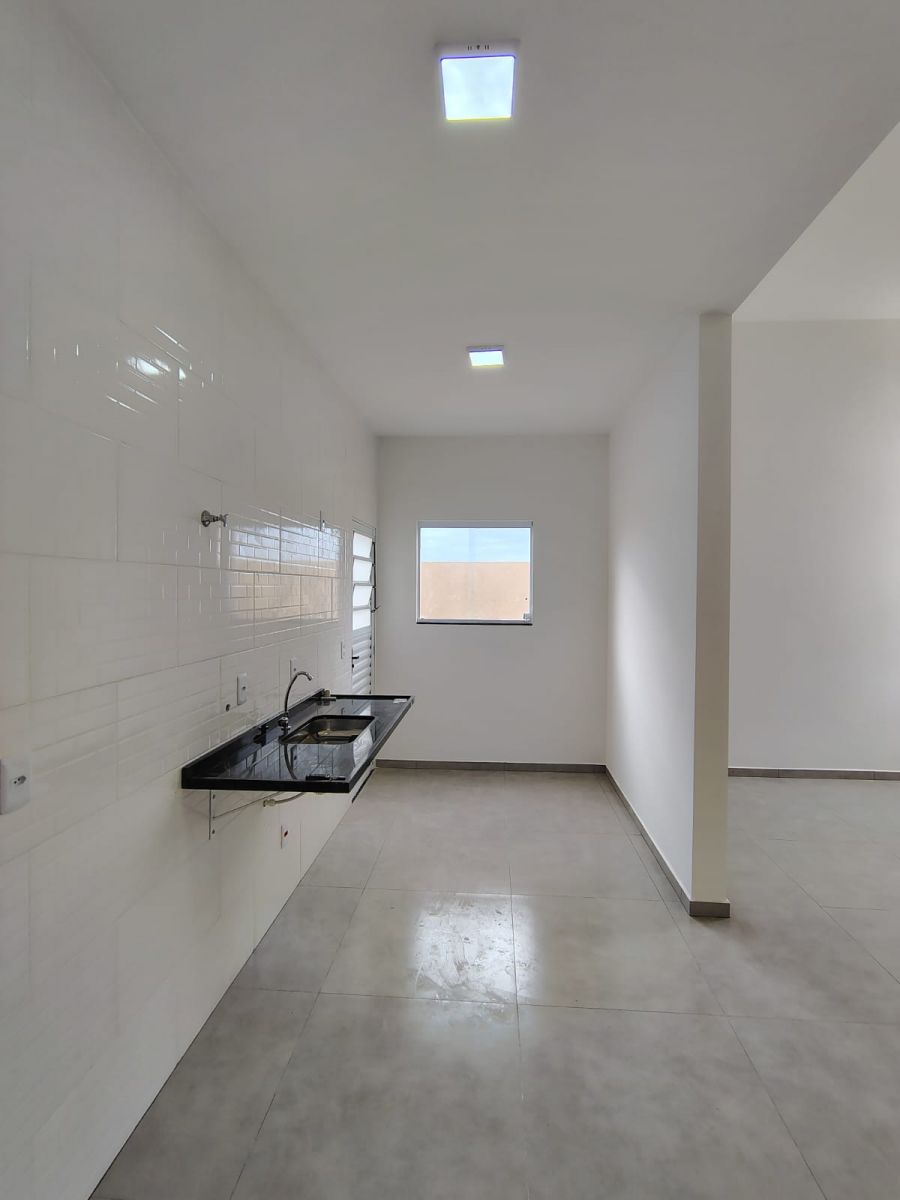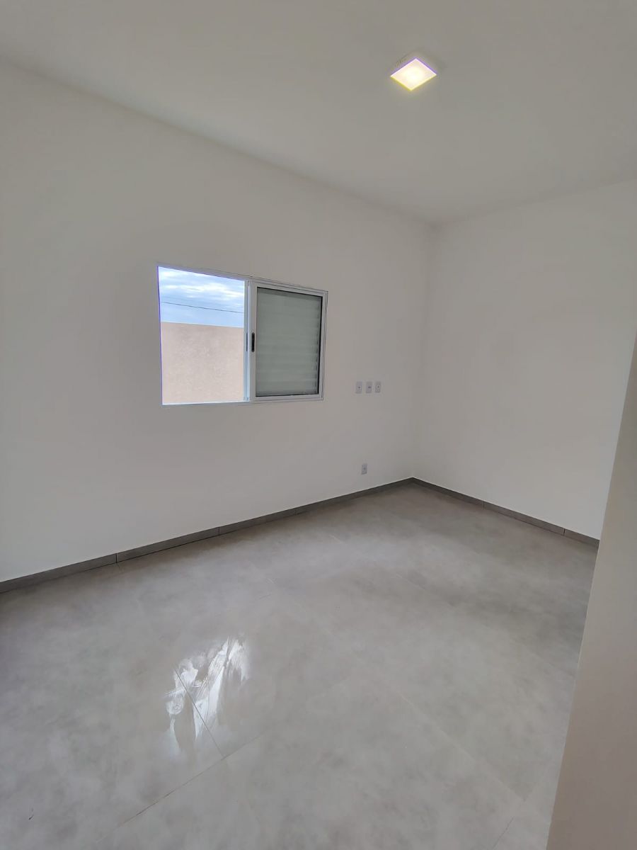 Casa térrea nova c/ 3 quartos, sendo 1 suíte, sala de estar e jantar ampla, cozinha espaçosa, 2 banheiros, lavanderia, quintal e 2 vagas de garagem.