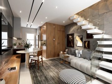 O condomínio é composto por sobrados de 2 dormitórios, com 1 banheiro e 1 lavabo, e algumas unidades possuem 2 vagas de garagem. As áreas privativas variam em torno de 48 m² e quintal de 7 a 100 m².