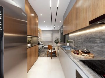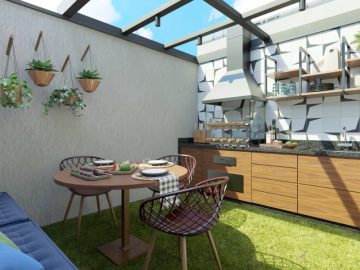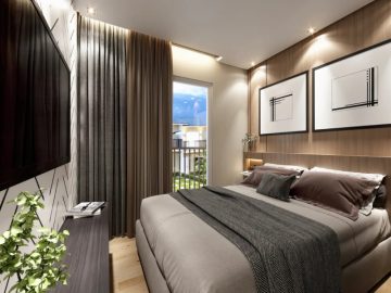 (*) Entregue no contra-piso sala e quartos, piso cerâmico nas áreas frias cozinha e banheiros.