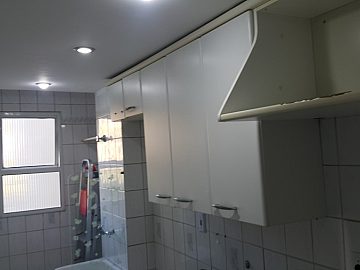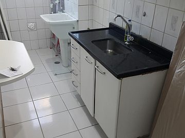 Apartamento 2 quartos, sala, banheiro, cozinha c/ armários, lavanderia e 1 vaga de garagem.