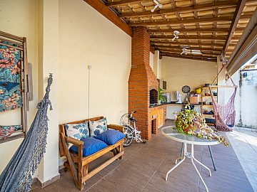 A cozinha possui armários planejados e integração direta com a área externa, onde o quintal oferece uma área gourmet completa com churrasqueira, ideal para momentos especiais com amigos e familiares. A casa ainda dispõe de uma saleta versátil que pode ser transformada em escritório, brinquedoteca, sala de jogos ou até mesmo em um quarto adicional, conforme a necessidade.