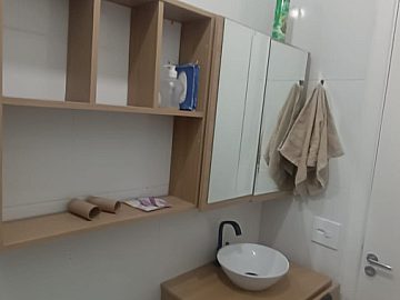 Apartamento 3 quartos, sendo 1 suíte, sala com sacada, sala de estar e sala de jantar, 2 banheiros com fino acabamento e Box de Vidro, cozinha americana e lavanderia com armários planejados e 1 vaga de garagem.