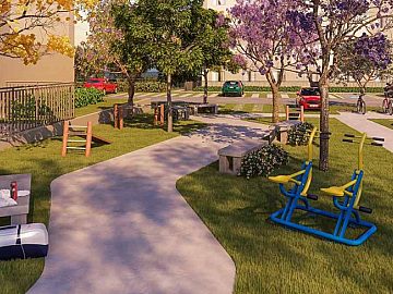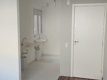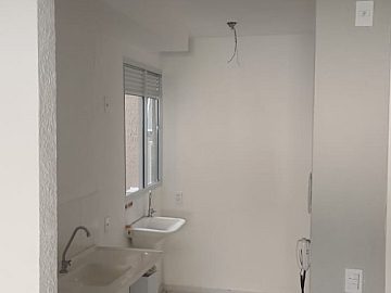 Apartamento 2 quartos, banheiro, sala de estar, cozinha, lavanderia e 1 vaga de garagem.