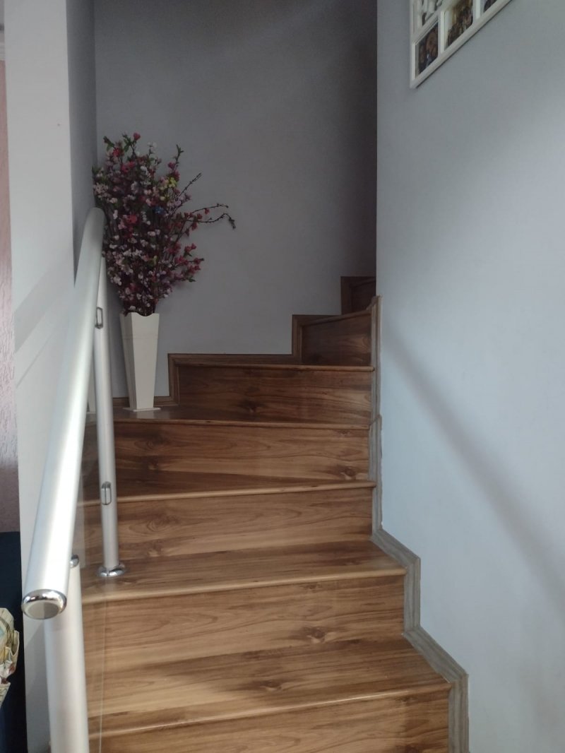 Lindo sobrado 2 quartos, sendo 1 com armários planejados, sala de estar, sala de jantar, cozinha com armários planejados, lavanderia, banheiro social c/ gabinete e box de vidro, lavabo, corredor lateral e quintal coberto, espaço gourmet c/ churrasqueira e 2 vagas de garagem cobertas.