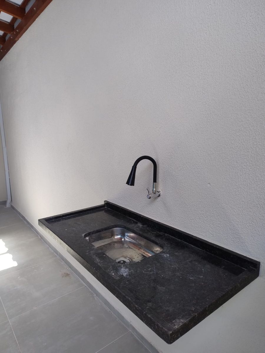 Casa com 3 quartos, sendo 1 suíte, sala dois ambientes, cozinha, 2 banheiros, lavanderia, quintal c/ piso e churrasqueira e 2 vagas de garagem coberta.